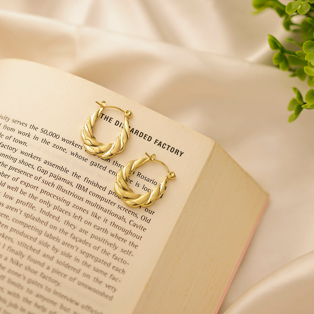 Make a bold yet refined statement with these intricately designed gold-toned anti-tarnish earrings. Featuring a unique woven pattern, these square-shaped earrings exude vintage charm with a contemporary edge. Their sculpted texture reflects light beautifully, adding depth and sophistication to any outfit.